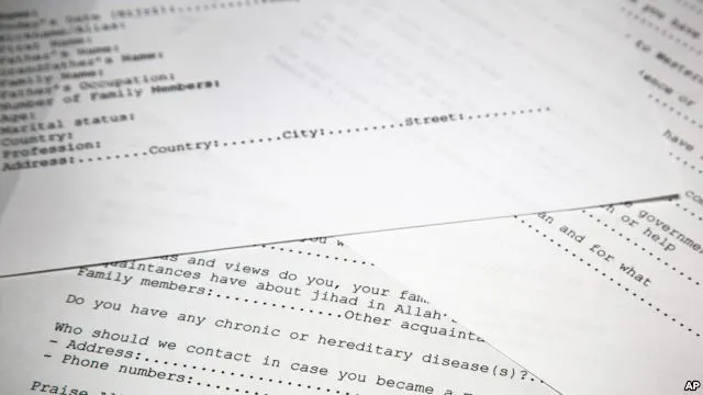 Bản dịch của một lá đơn xin gia nhập Al-Qeada do tình báo Mỹ thu thập được, dịch lại và công bố ngày 20-5-2015. Ảnh: VOA