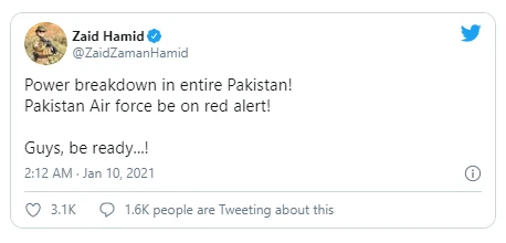 Một số tài khoản mạng loan tin rằng Pakistan có thể hứng chịu một cuộc tấn công quân sự sau khi bị cúp điện.