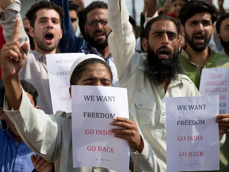 Người Hồi giáo Kashmir biểu tình ở TP Srinagar của bang Jammu and Kashmir (Ấn Độ) phản đối việc bang này bị hủy bỏ quy chế đặc biệt. Ảnh: AP