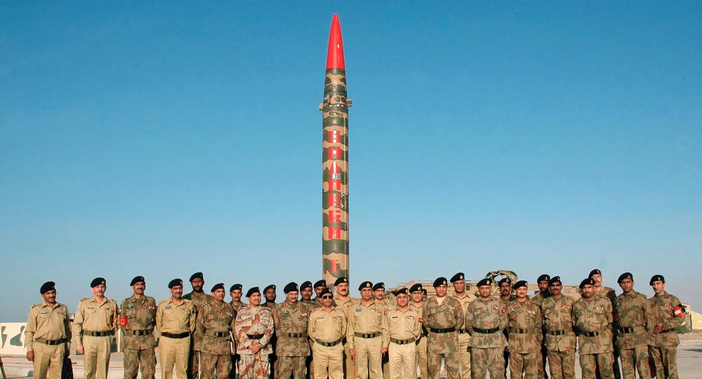 Tên lửa đạn đạo Shaheen-III cùng đội ngũ giám sát của Pakistan (Nguồn: Sputnik News)