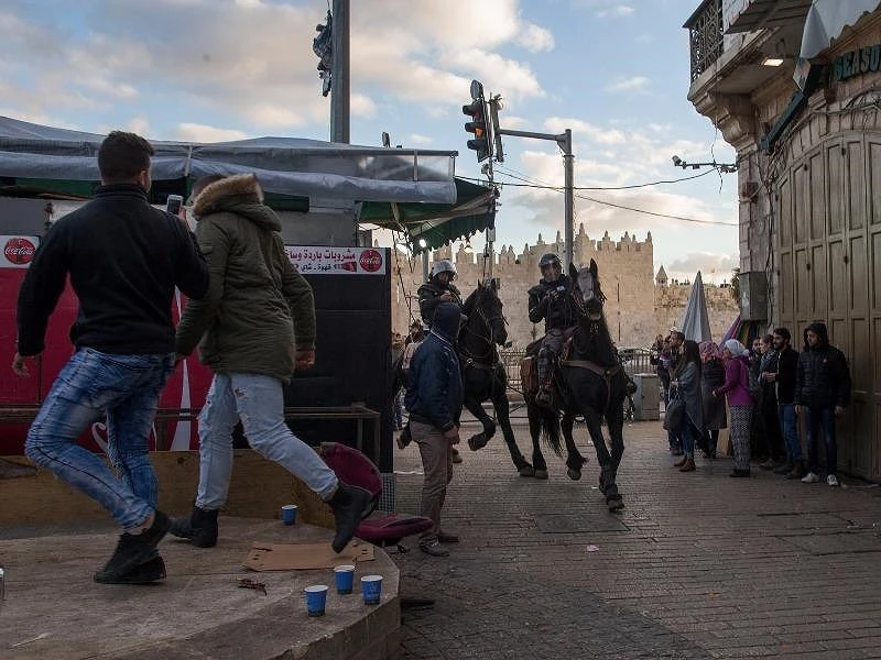 Cảnh sát Israel dùng ngựa giải tán người biểu tình ở TP Jerusalem ngày 7-12. Ảnh: NEW YORK TIMES