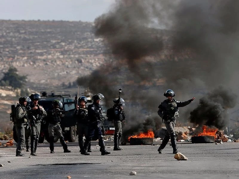 Các binh sĩ Israel đụng độ với người biểu tình Palestine gần một chốt an ninh tại TP Bethlehem ở Bờ Tây. Ảnh: AFP