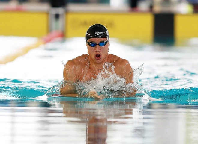 Kình ngư Việt kiều Paul Lê Nguyễn soán ngôi Trần Duy Khôi, nêu kỷ lục QG mới ở cự ly 100 m ngửa nam. ẢNH: SGGP