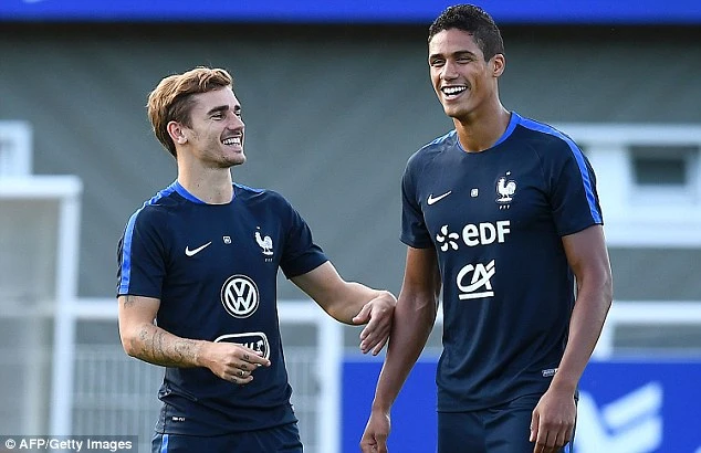 Griezmann chia sẻ một câu chuyện đùa với Raphael Varane