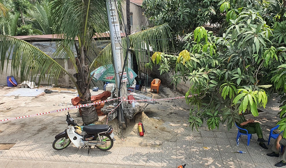 Căn nhà diện tích 60 m2 đang được phong toả sau vụ hoả hoạn khiến sáu người trong gia đình thiệt mạng. Ảnh: NGUYỄN YÊN