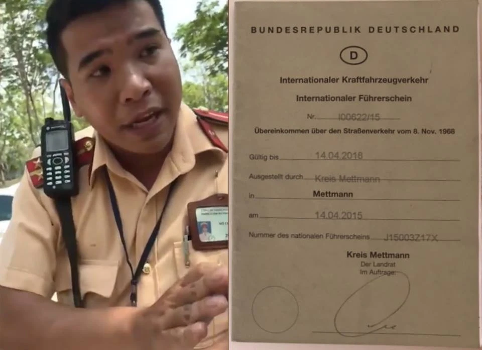 Chiều 20-3, mạng xã hội xuất hiện clip một Việt kiều Đức tranh cãi với một CSGT vì CSGT không chấp nhận bằng lái quốc tế của người vi phạm này.