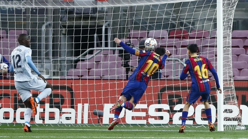 Bàn thắng mà “Si lùn” ghi bằng đầu trong trận hòa 2-2 với Valencia giúp Messi cán mốc kỷ lục của tiền bối Pele.