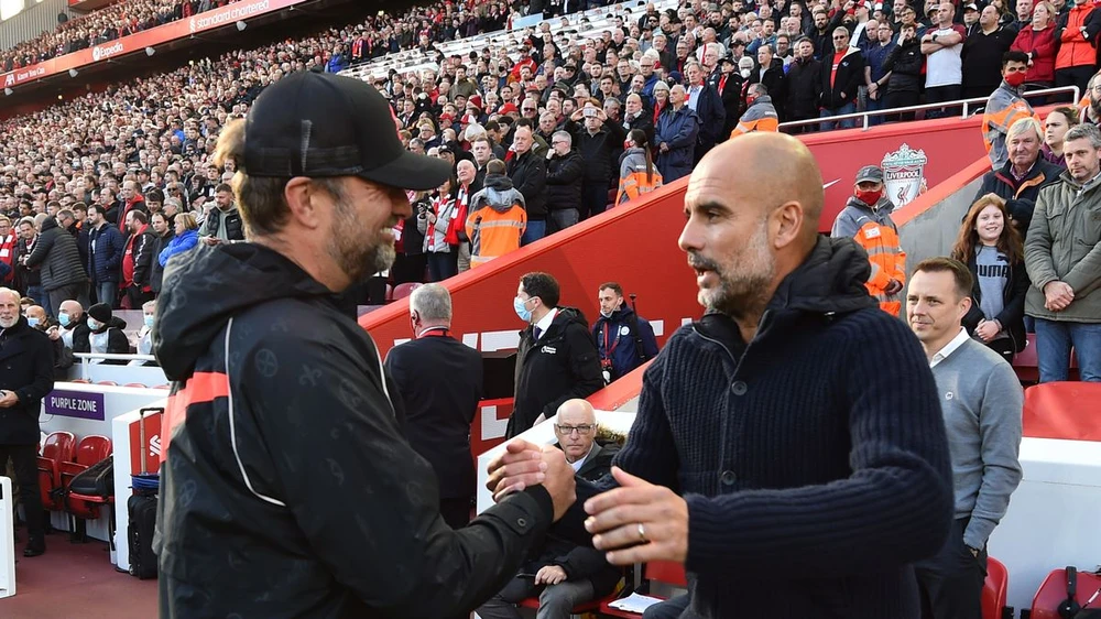 Jurgen Klopp của Liverpool và Pep Guardiola của Manchester City sẽ đối đầu với nhau trong trận "chung kết" Premier League vào tuần tới. ẢNH: GETTY