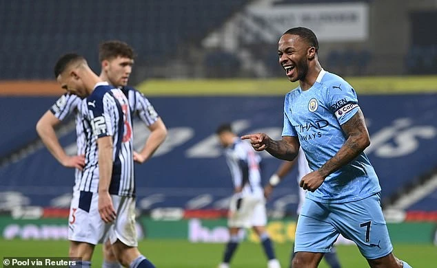 Steling ăn mừng bàn thắng ấn định tỉ số 5-0 cho Man City. ẢNH: REUTERS