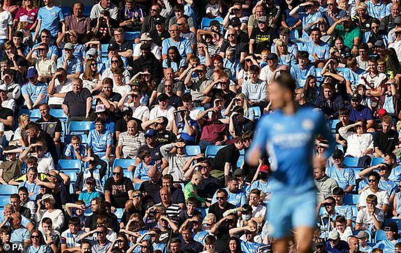 CĐV vẫn không lấp đầy sân Etihad trong trận Man City hòa Southampton. ẢNH: PA