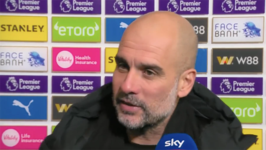 Pep Guardiola trả lời phỏng vấn Sky Sports sau trận đấu. ẢNH: SKY SPORTS