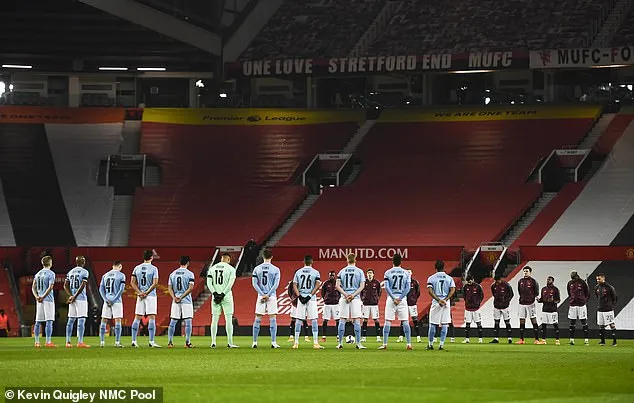 Cầu thủ hai đội dành phút mặc niệm Colin Bell. ẢNH: NMC POOL