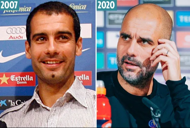 Pep Guardiola năm 2007 và 2020. ẢNH: GETTY