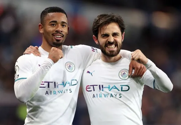 Silva ăn mừng bàn thắng cùng Jesus trong trận Man City hạ Aston Villa 2-1. ẢNH: PA