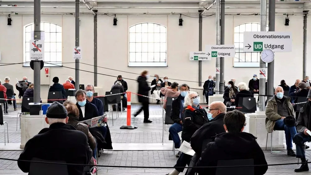 Người dân Đan Mạch chờ tiêm vaccine COVID-19 tại một trung tâm tiêm chủng ở thủ đô Copenhagen ngày 25-7. Ảnh: FRANCE24