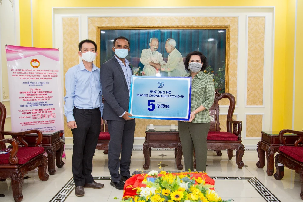 Ông Sai Ramana Ponugoti, Tổng giám đốc P&G Việt Nam, trao tặng gói tài trợ 5 tỉ đồng thông qua Ủy ban MTTQ Việt Nam.