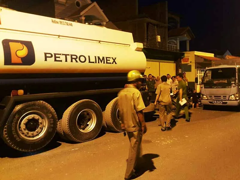 Cũng thời điểm đó, một mũi phối hợp khác bắt quả tang Lê Anh Tuấn (31 tuổi, ngụ H.Nhà Bè) chạy xe bồn BS 51C-544.64 chở 25 ngàn lít xăng máy bay Jet A1 vừa ra khỏi Tổng kho xăng dầu Nhà Bè, dừng trước số 33 Đặng Nhữ Lâm (KP.6, TT.Nhà Bè) để Nhan Tấn Trí (34 tuổi, ngụ H.Nhà Bè, tài xế phụ) cùng Trần Văn Thành (46 tuổi, ngụ H.Nhà Bè) rút xăng. Thành mang xăng trộm cắp vào nhà số 33 Đặng Nhữ Lâm của Ngô Thị Thanh Huỳnh (47 tuổi, ngụ H.Nhà Bè, cầm đầu, chủ tiêu thụ xăng dầu trộm) cất giấu.