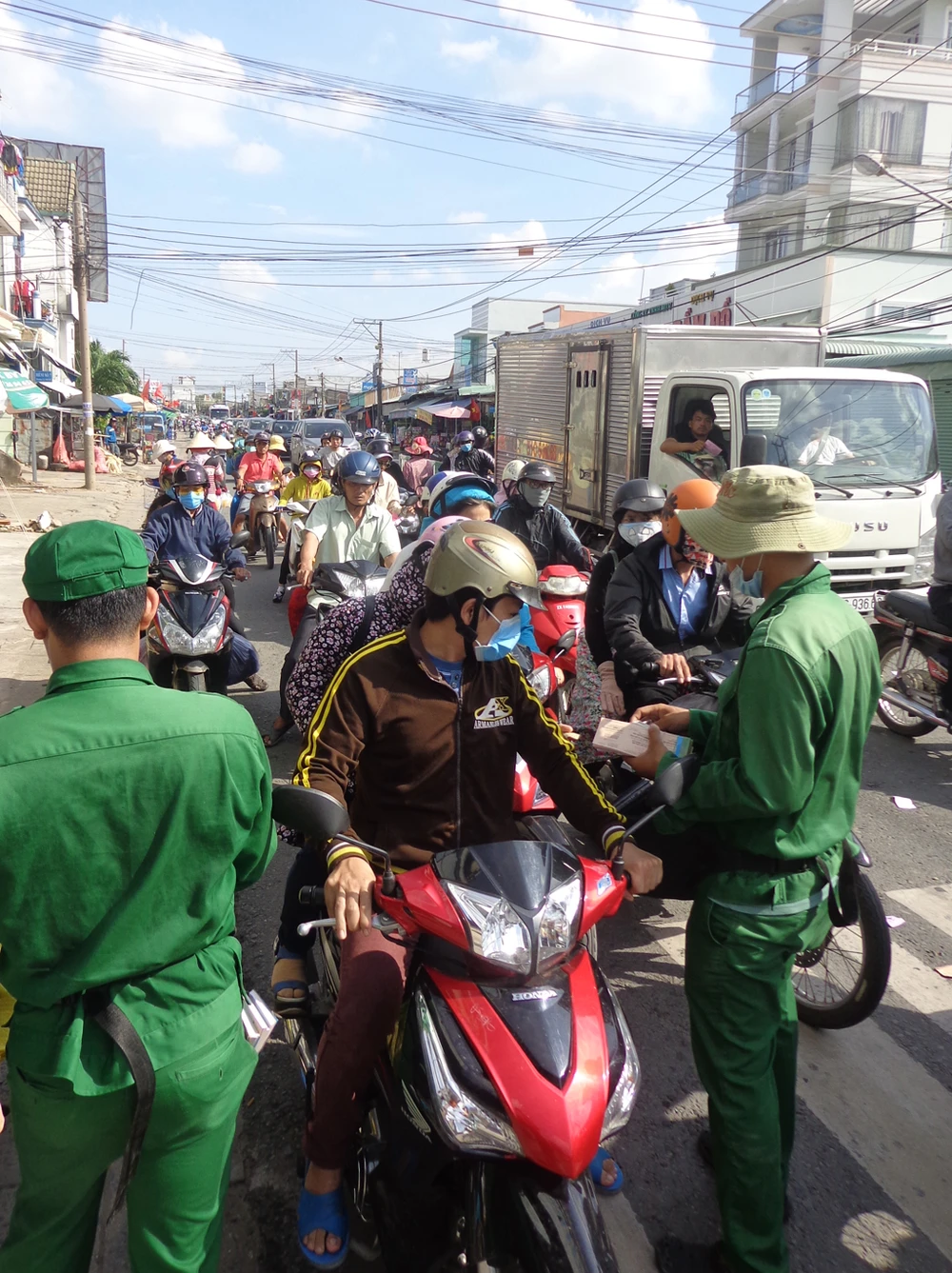 Ở đầu phía Nhơn Trạch việc bán vé được rải dài đến gần vòng cung xã Phú Hữu đã góp phần giảm ùn ứ ngay trước cửa bến