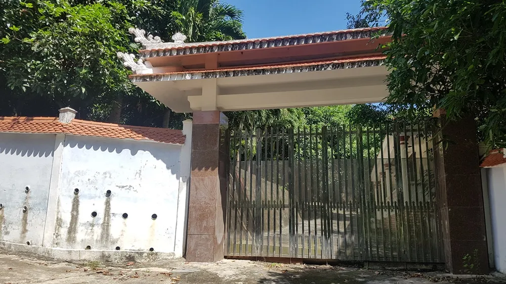 Một trong sáu cổng vào biệt phủ, ngay sau cánh cổng là một ngôi nhà xây gạch kiên cố chưa được tháo dỡ. Ảnh: TẤN VIỆT