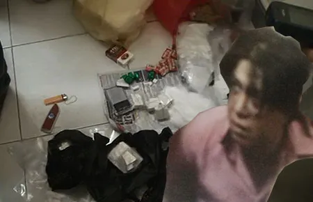 Hiếu - cầm đầu đường dây mua bán ma túy và tang vật. (Ảnh do cơ quan công an cung cấp)