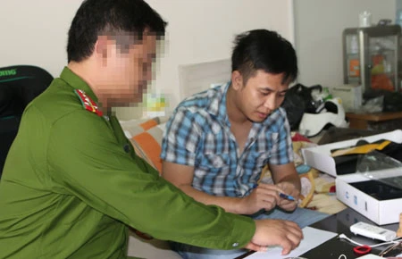 Đỗ Hà Duy Thanh (thành viên diễn đàn bkvfamily.info) bị bắt giữ tại nhà ở quận Thủ Đức, TP.HCM. Ảnh: ÁI NHÂN