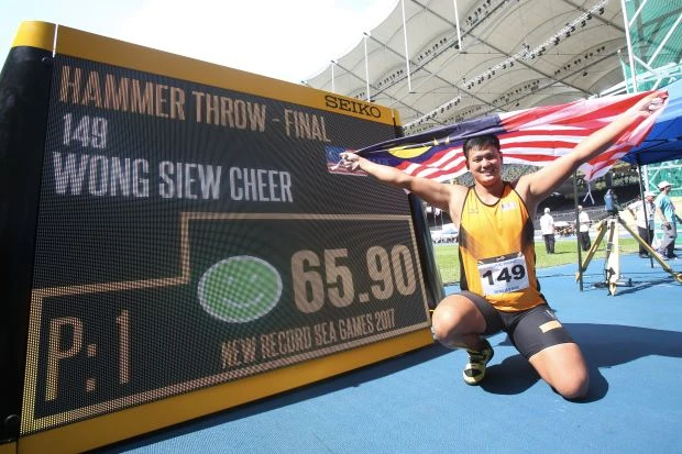 Điền kinh SEA Games 29 bắt đầu những cơn mưa kỷ lục. Ở nội dung ném búa vừa chứng kiến kỷ lục mới của SEA Games ra đời. Người thiết lập là Jackie Wing Siew Cheer, người Malaysia.