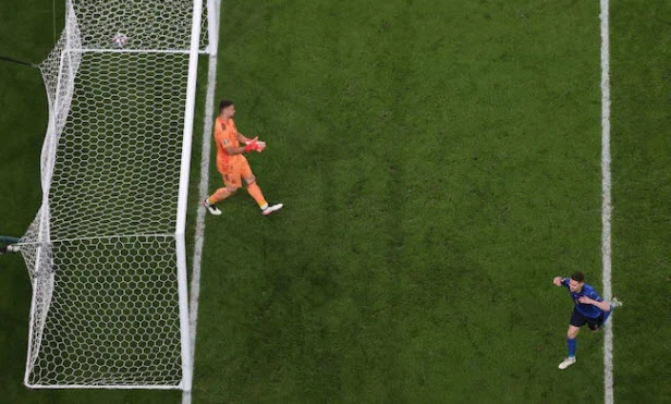 Ở loạt sút luân lưu, Olmo và Morata của Tây Ban Nha sút không thành công còn người Ý chỉ có Locatelli sút hỏng. Nghiệt ngã cho Tây Ban Nha là hai cầu thủ phối hợp ghi bàn gỡ hòa 1-1 lại là người đá hỏng phạt đền. Pha nhảy chân sáo ghi bàn quyết định trên loạt sút luân lưu của Jorginho đã kết thúc mọi hi vọng của Tây Ban Nha.