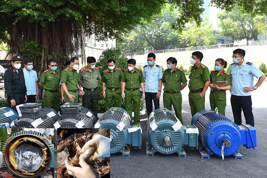 Công an thu giữ các mô tơ điện nhưng bên trong là ma túy và bao tử heo