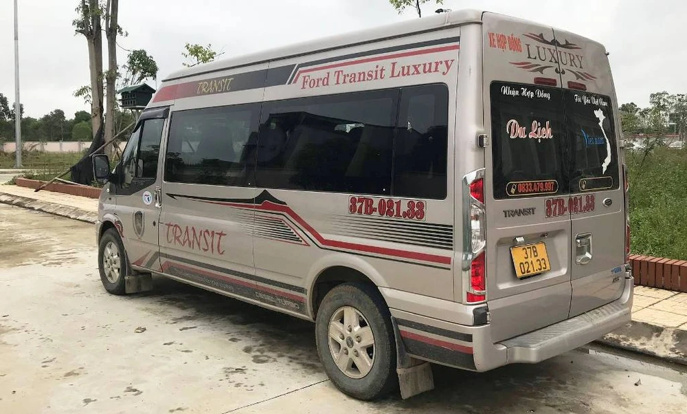 Chiếc xe khách chở người lên đồi đánh bạc. Ảnh: CA