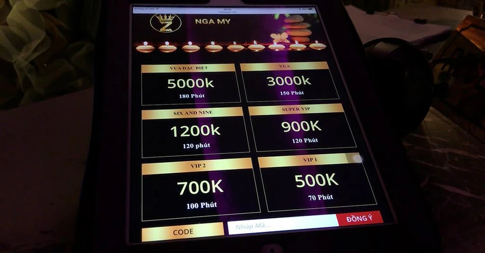 Nếu chọn suất "massage vua", khách sẽ được vui vẻ cùng năm cô gái trong vòng 180 phút. Ảnh: HT