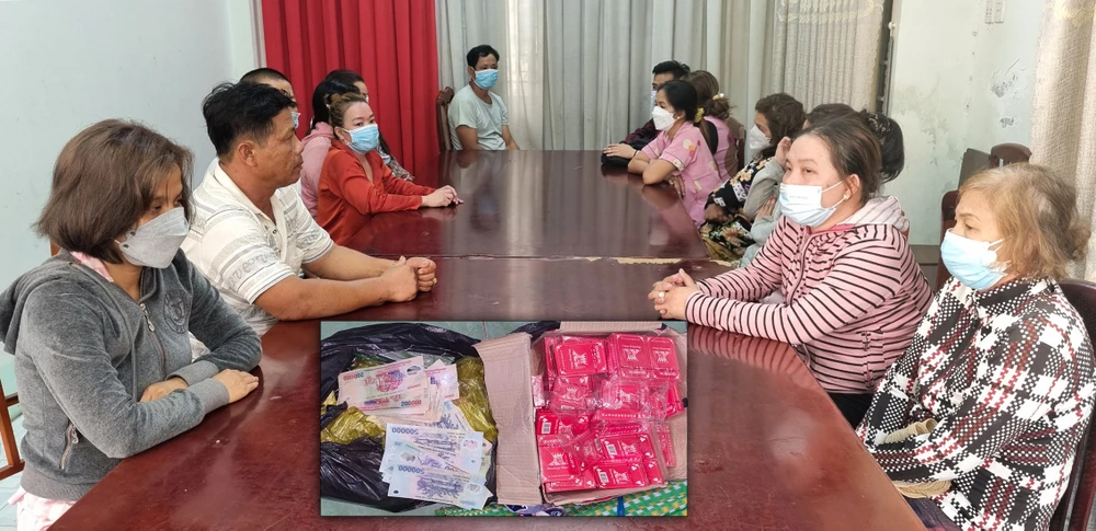 Những người đánh bạc tại cơ quan công an (ảnh lớn) và tang vật tại chiếu bạc (ảnh nhỏ). Ảnh: VĂN VŨ