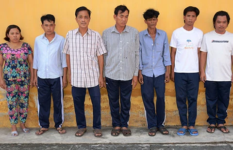 Những người đánh bạc bị tạm giữ. Ảnh: VĨNH LINH