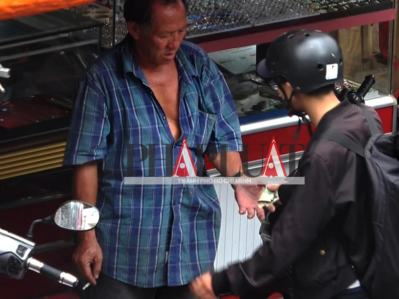 Sau đó thanh niên đưa tiền cho ông Xuân và ông này đi tới nơi nhóm CSTT-CĐ lấy giấy tờ đưa ra sau lưng cho nam thanh niên để người này lấy xe rời đi.