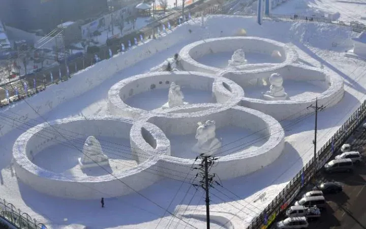 Công trình điêu khắc bằng tuyết tại gần địa điểm diễn ra Olympic 2018 ở Pyeongchang, Hàn Quốc. Ảnh: AFP.