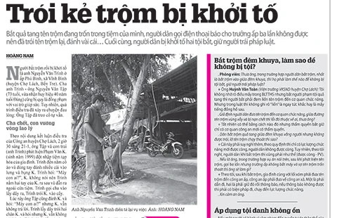 Thành ra cha con anh Trình cực chẳng đã phải “neo giữ” tên trộm hơn hai tiếng đồng hồ tại nhà mình, để rồi sau đó bị xử lý hình sự.