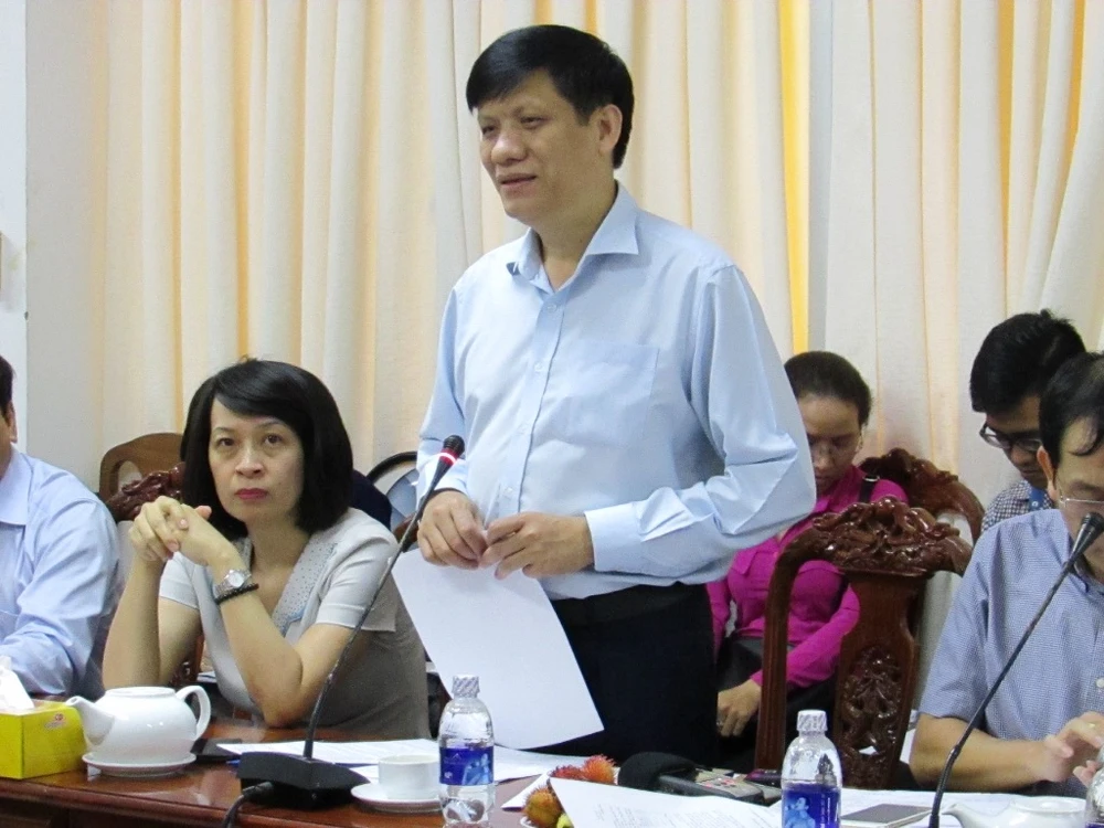 Thứ trưởng Bộ Y tế Nguyễn Thanh Long phát biểu tại buổi làm việc với UBND TP Cần Thơ ngày 11-10. Ảnh: N.NAM