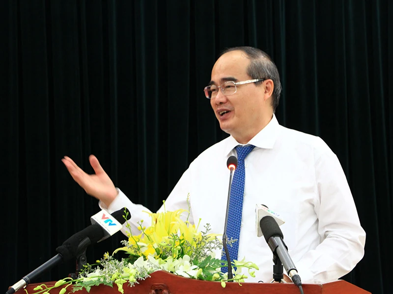Ông Nguyễn Thiện Nhân, Bí thư Thành ủy TP.HCM, phát biểu tại hội thảo. Ảnh: TÁ LÂM