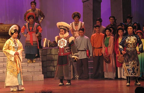Vở cải lương Tiếng trống Mê Linh của chương trình “Chút tình gửi lại nhân gian” dù được làm lại rất nghiêm túc nhưng cũng chỉ mang tính hoài niệm, giá vé lại quá cao. Ảnh: HÒA BÌNH
