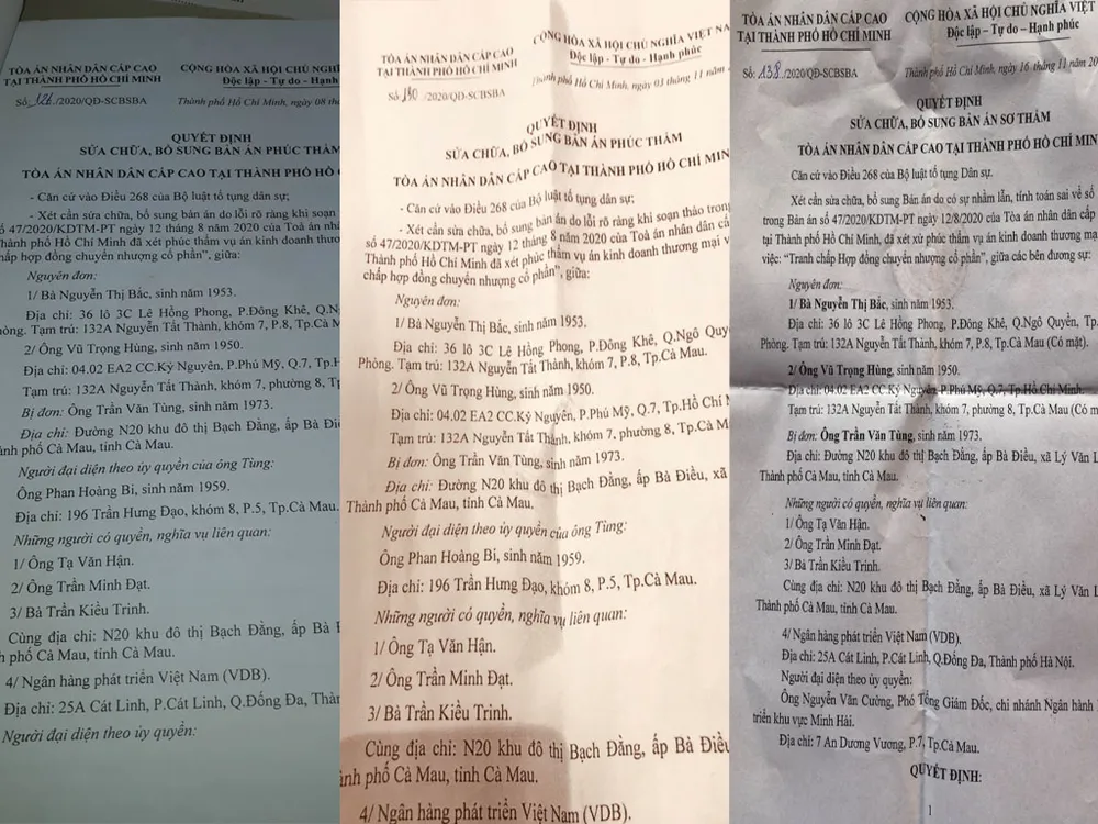 Ba quyết định sửa chữa, bổ sung một bản án của TAND Cấp cao tại TP.HCM Ảnh: TRẦN VŨ