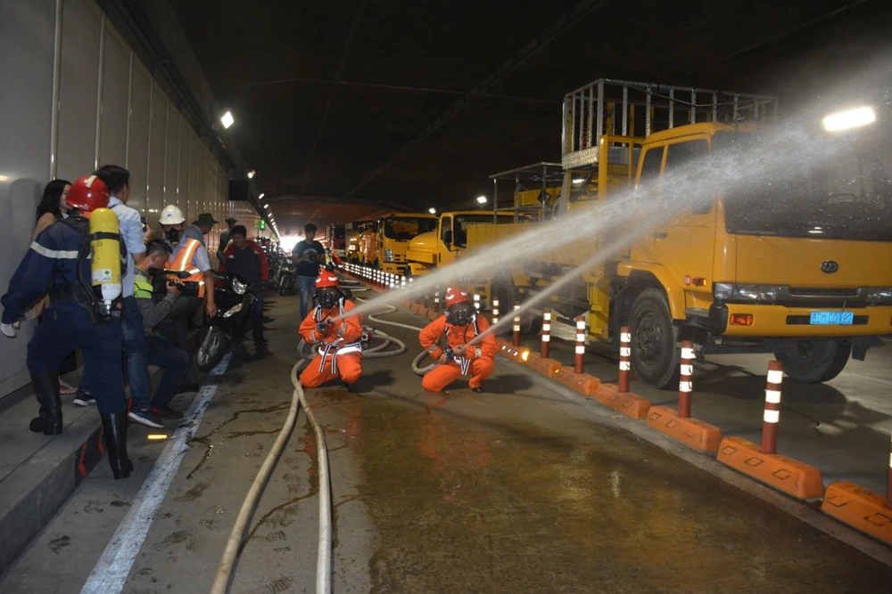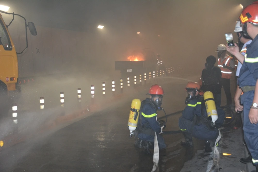 Theo đó, buổi diễn tập có sự tham gia của Cảnh sát PCCC TP.HCM, Trung tâm Quản lý đường hầm sông Sài Gòn, Sở GTVT TP.HCM cùng phối hợp với tổ chức.