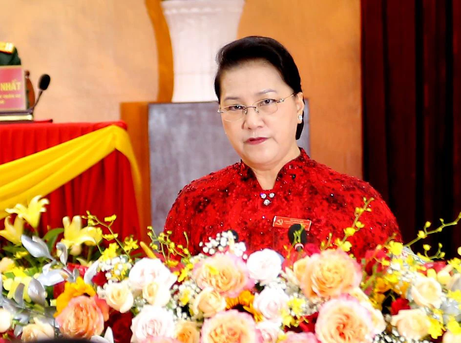 Chủ tịch QH Nguyễn Thị Kim Ngân phát biểu chỉ đạo tại Đại hội Đảng bộ TP Cần Thơ ngày 24-9. Ảnh: TQT