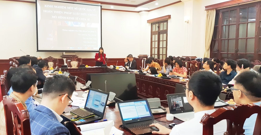 Hội nghị nhận được nhiều sự góp ý của các chuyên gia nhằm hoàn thiện đề tài nghiên cứu mô hình kinh tế chia sẻ của Bộ Tư pháp. Ảnh: V.LONG