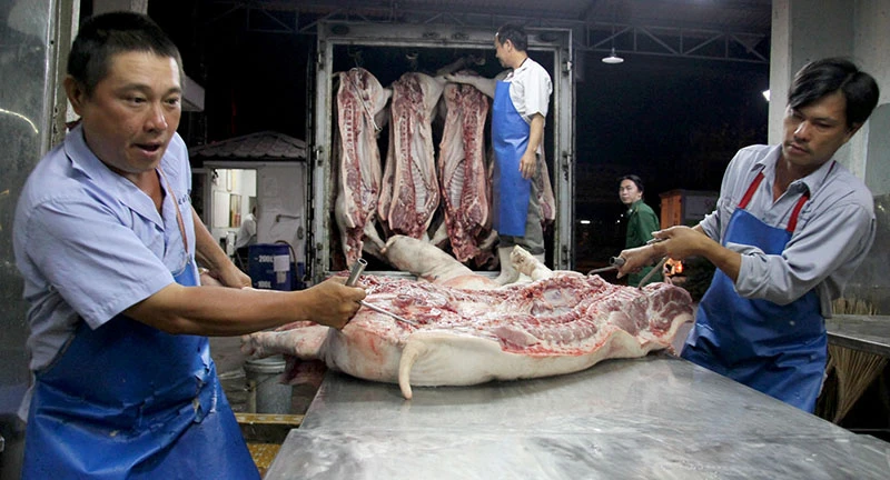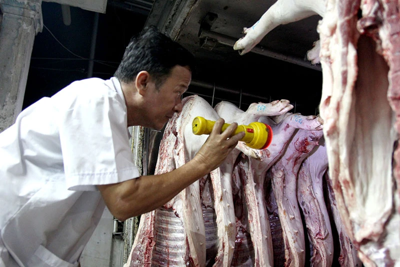 Đến hơn 3 giờ sáng 23-1, chị Nguyễn Thị Kim Duyên- Phó Trưởng trạm KDĐV Thủ Đức vẫn thoăn thoắt bàn tay nhập số liệu, thông tin, đóng dấu khi kiểm hàng; đôi mắt vẫn còn sáng rực. “Mọi người quen rồi, nên còn rất tỉnh. Từ 3 giờ sáng trở đi là toàn thịt heo, trước đó thì toàn thịt gà, thỉnh thoảng mới có bò và trứng. Vì đây là đợt cao điểm ngăn chặn thịt bẩn tuồn vào TP nên anh em rất áp lực. Trạm KDĐV Thủ Đức là trạm đầu ngõ nên phải kiểm tra rất chặt, nếu có vụ ngộ độc thực phẩm nào hoặc phát hiện thịt bẩn trong nội thành thì trạm mình phải chịu trách nhiệm đầu tiên. Phải làm tốt để bà con TP yên tâm ăn tết” - chị Duyên nói.