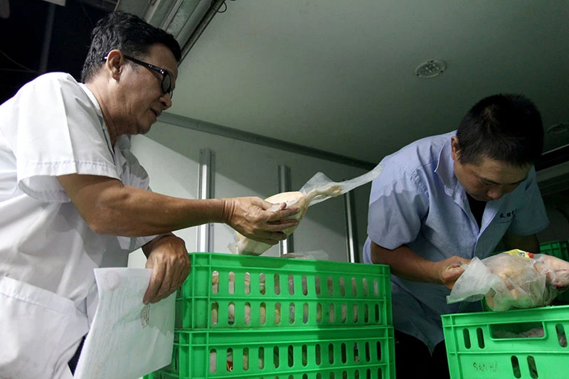 | Tính trong đêm, trạm KDĐV Thủ Đức đã tiến hành phúc kiểm hơn 100 xe tải chở gia súc, gia cầm vào TP.HCM mà chủ yếu là gà và heo. Chị Nguyễn Thị Kim Duyên cho biết từ đầu tháng 1 đến trước tết Nguyên đán là cao điểm kiểm tra gia cầm, gia súc bẩn tuồn vào TP.HCM và đi các tỉnh lân cận; các xe tải chuyên chở gia súc, gia cầm cũng tăng về số chuyến và số lượng nên công tác kiểm tra áp lực hơn ngày thường. “Để phòng ngừa các sản phẩm không đạt chất lượng vệ sinh thú y vào tiêu thụ ở TP.HCM phục vụ dịp tết nên thời điểm này, anh em tăng cường phối hợp với các đoàn kiểm tra liên ngành như CSGT Rạch Chiếc, thanh niên xung phong, quản lý thị trường... tiến hành kiểm tra dọc QL1A từ cầu Đồng Nai đến Ngã ba 621 (quận Thủ Đức); và bất kỳ nơi nào có cuộc gọi khẩn cấp từ các đoàn kiểm tra thì anh em phải lập tức đi ngay dù đêm hay ngày” - chị Duyên thông tin. |