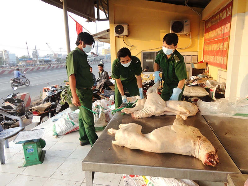 Đây là hai cửa ngõ quan trọng nằm ở hai đầu của TP.HCM - nơi kiểm tra hàng trăm xe tải chở các loại gia súc, gia cầm vào TP.HCM tiêu thụ trước dịp tết Nguyên Đán.