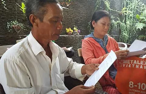 Ông Nguyễn Thanh Tuấn cùng vợ đang trò chuyện cùng PV báo Pháp Luật TP.HCM. Ảnh: PHƯƠNG NAM