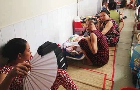 Dù đã tập trung giảm tải nhưng tình trạng bệnh nhân nằm ngoài hành lang vẫn còn. Ảnh: DUY TÍNH