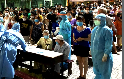 Tập trung lấy mẫu xét nghiệm quá đông dễ có nguy cơ lây nhiễm virus SARS-CoV-2. Ảnh: TRẦN NGỌC