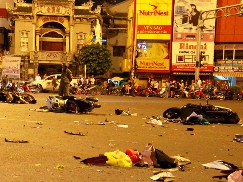 Hiện trường vụ tai nạn giao thông tại ngã tư Hàng Xanh, TP.HCM do người lái ô tô uống rượu bia gây ra. Ảnh: plo.vn
