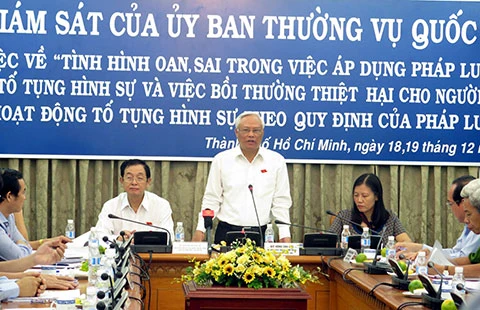 Theo ông Uông Chu Lưu, qua xem xét các báo cáo và kiểm tra thực tế công tác điều tra, truy tố, xét xử, bồi thường oan ở TP.HCM thì có thể thấy vẫn còn một số tồn tại như vi phạm thời hạn luật định, xác định sai tội danh, áp dụng sai khung hình phạt, không tương xứng hành vi phạm tội, áp dụng án treo không đúng. Quá trình thu thập chứng cứ, lấy lời khai cũng có biểu hiện sai. Nhiều vụ có biểu hiện oan vì không có hành vi phạm tội nhưng lý do đình chỉ không đúng.